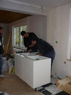 ....inflytt om 4 veckor! :) Det är i stort sett färdigmålat på utsidan och jag är jättenöjd med vårt dansk-inspirerade hus. Insidan börjar oxå ta form, övervåningen är snart färdig och köksgolvet är inlagt och killarna har börjat sätta köket. Idag var Anders (en kompis till mannen) och satte kaklet i badrummet på nedervåningen. Blir riktigt snyggt och det kommer att bli såå snyggt ihop med pärlspont. Idag har jag roat mig med att måla ett gammalt skåp som stod i huset och som ska funka som barngarderob. Var målat i en blå färg men det blir vitt igen, bilder kommer snart på detta fina skåp...söndag, oktober 31, 2010